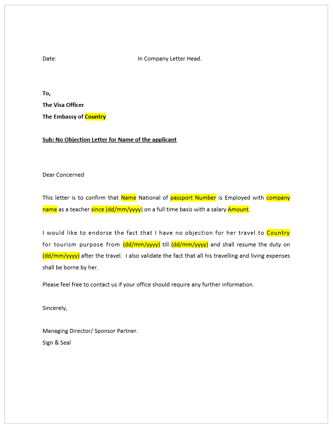 When preparing your NOC, make sure to be specific. Now you don’t need to include the whole itinerary. The letter should be on company letterhead with the subject given as No objection letter for “your name”.